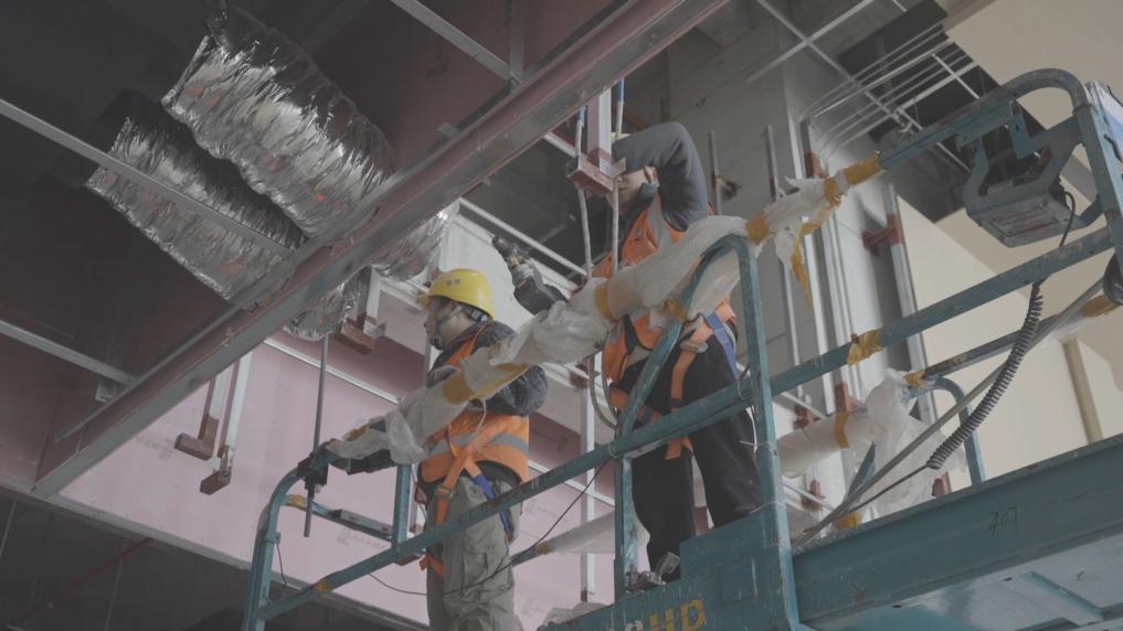 在武漢市同濟醫(yī)院國家醫(yī)學中心轉化醫(yī)學大樓項目現(xiàn)場,項目管理人員正月初六已全部返崗。