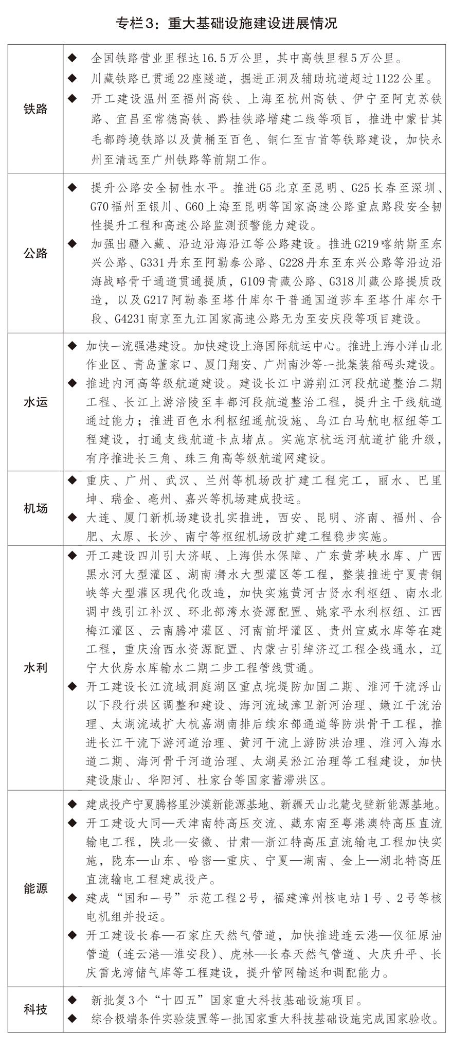 二是投資補短板調(diào)結(jié)構(gòu)加力增效。統(tǒng)籌用好各類資金支持重點項目建設(shè),持續(xù)優(yōu)化中央預(yù)算內(nèi)投資結(jié)構(gòu),擴大地方政府專項債券投向領(lǐng)域和用作資本金范圍,指導(dǎo)專項債券“自審自發(fā)”地區(qū)扎實有序開展相關(guān)工作。推動“十四五”規(guī)劃102項重大工程項目順利實現(xiàn)規(guī)劃目標(biāo)任務(wù),開工建設(shè)雅下水電等標(biāo)志性工程?,F(xiàn)代化基礎(chǔ)設(shè)施體系建設(shè)深入推進,國家綜合立體交通網(wǎng)“6軸7廊8通道”加速完善。規(guī)范和加強中央投資項目審批管理,提高政府投資效益。出臺進一步促進民間投資發(fā)展政策措施。滾動向民間資本推介5400多個項目,涉及總投資超過3.9萬億元。加大基礎(chǔ)設(shè)施競爭性領(lǐng)域向各類經(jīng)營主體公平開放力度,5個新核準核電項目引入民間資本參股比例最高達20%,大渡河丹巴水電站等項目加快引入民間資本。推動基礎(chǔ)設(shè)施領(lǐng)域不動產(chǎn)投資信托基金(REITs)擴圍擴容,算力設(shè)施、城鎮(zhèn)供熱、農(nóng)貿(mào)市場、城市更新、專業(yè)倉庫等領(lǐng)域?qū)崿F(xiàn)“首單”發(fā)行。2025年工業(yè)投資、制造業(yè)投資分別增長2.6%、0.6%。