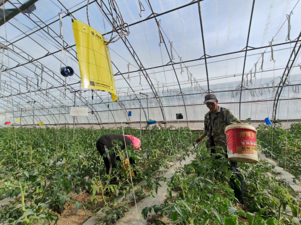 4月15日,中國互聯(lián)網(wǎng)發(fā)展基金會中國正能量網(wǎng)絡(luò)傳播專項(xiàng)基金資助支持的“理響中國·講好‘中國式商量’故事”網(wǎng)絡(luò)主題采訪活動,來到寧夏回族自治區(qū)銀川市賀蘭縣金貴鎮(zhèn)。此時(shí)正值春意盎然之際。大棚里的番茄紛紛吐蕊,很多已經(jīng)掛果,再過一些日子就可以上市食用。農(nóng)民正在忙碌的工作。田地里掛著的十幾塊藍(lán)色、紅色、黃色板子引起了大家的關(guān)注?!斑@是色板誘殺技術(shù),可以有效誘殺番茄潛葉蛾、蚜蟲、薊馬等害蟲,從而防止蟲害的發(fā)生?!?/p>