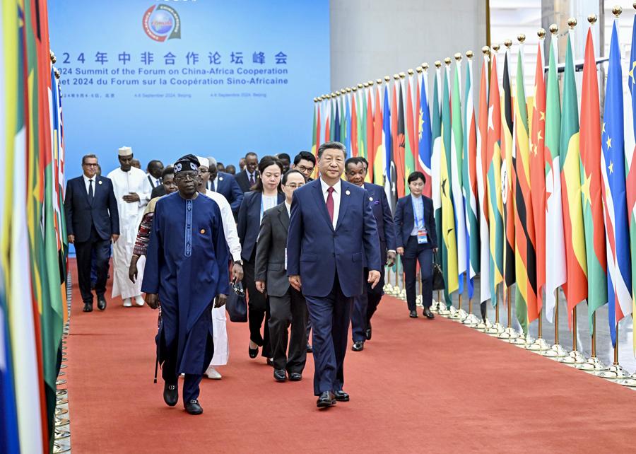 初秋北京,高遠(yuǎn)澄明。天安門廣場和長安街兩側(cè),鮮艷的五星紅旗同53個(gè)非洲國家和非洲聯(lián)盟旗幟迎風(fēng)飄揚(yáng)。