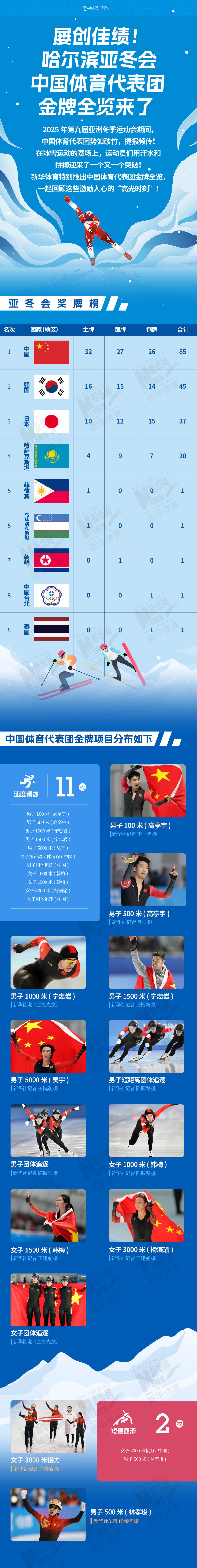 長圖|屢創(chuàng)佳績!哈爾濱亞冬會(huì)中國體育代表團(tuán)金牌全覽來了!