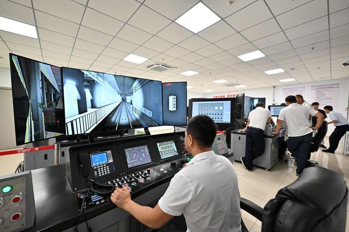哈薩克斯坦阿斯塔納首條輕軌列車的駕駛員學(xué)員在天津地鐵十號(hào)線車輛維修基地進(jìn)行地鐵模擬駕駛培訓(xùn)。(新華每日電訊記者孫凡越攝)