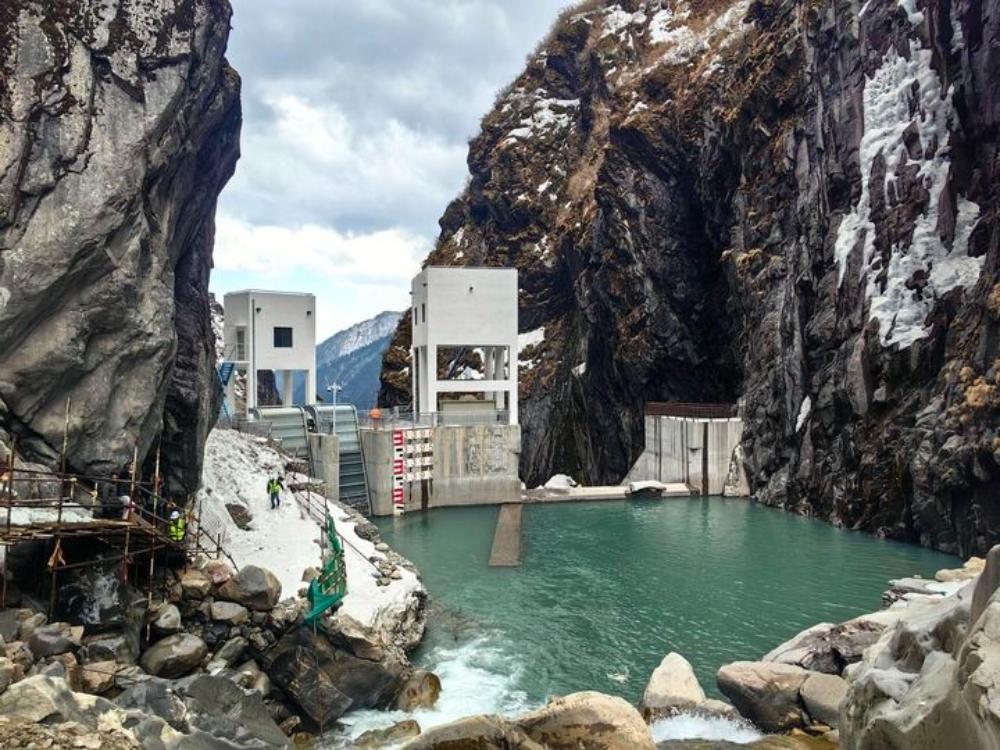 這是2025年3月17日在尼泊爾中北部拉蘇瓦縣拍攝的三金考拉水電站大壩。新華社發(fā)(中國港灣工程有限責(zé)任公司供圖)