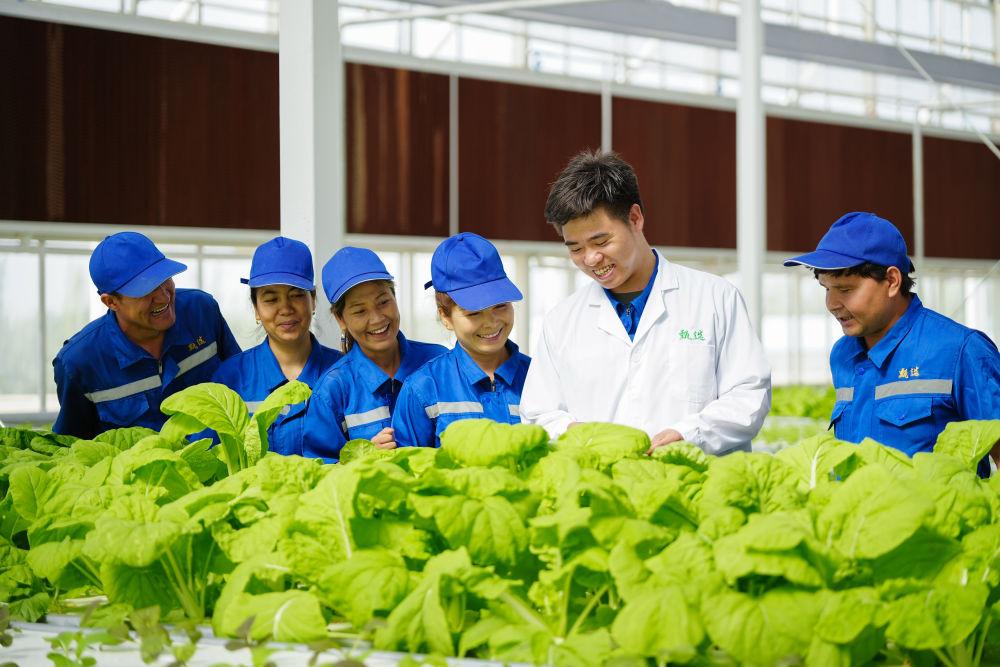 2025年6月25日,在新疆阿克蘇地區(qū)庫(kù)車(chē)市甬庫(kù)同心村智慧農(nóng)業(yè)植物工廠,技術(shù)人員在培訓(xùn)當(dāng)?shù)氐霓r(nóng)業(yè)產(chǎn)業(yè)工人。該工廠是浙江省寧波市對(duì)口援疆項(xiàng)目之一,引入了寧波企業(yè)先進(jìn)的無(wú)土栽培技術(shù)和設(shè)備,通過(guò)智能調(diào)控成功種植多種原本不適宜在當(dāng)?shù)厣娴霓r(nóng)作物。該項(xiàng)目在幫助村民在家門(mén)口實(shí)現(xiàn)就業(yè)的同時(shí),還為當(dāng)?shù)嘏囵B(yǎng)了農(nóng)業(yè)產(chǎn)業(yè)工人,同時(shí)為周邊學(xué)校開(kāi)展農(nóng)業(yè)科技科普提供了便利,實(shí)現(xiàn)經(jīng)濟(jì)效益與社會(huì)效益“雙豐收”。