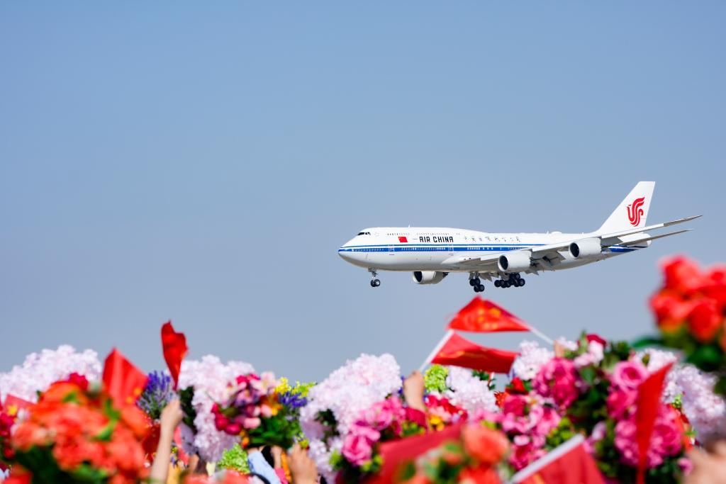 機(jī)場(chǎng)到住地沿途,花團(tuán)錦簇、彩旗飄揚(yáng)。人群如潮水涌到道路兩旁,揮動(dòng)的手臂與旗幟匯成海洋,一顆顆心激動(dòng)澎湃。習(xí)近平總書(shū)記向沿途群眾頻頻揮手、親切致意。