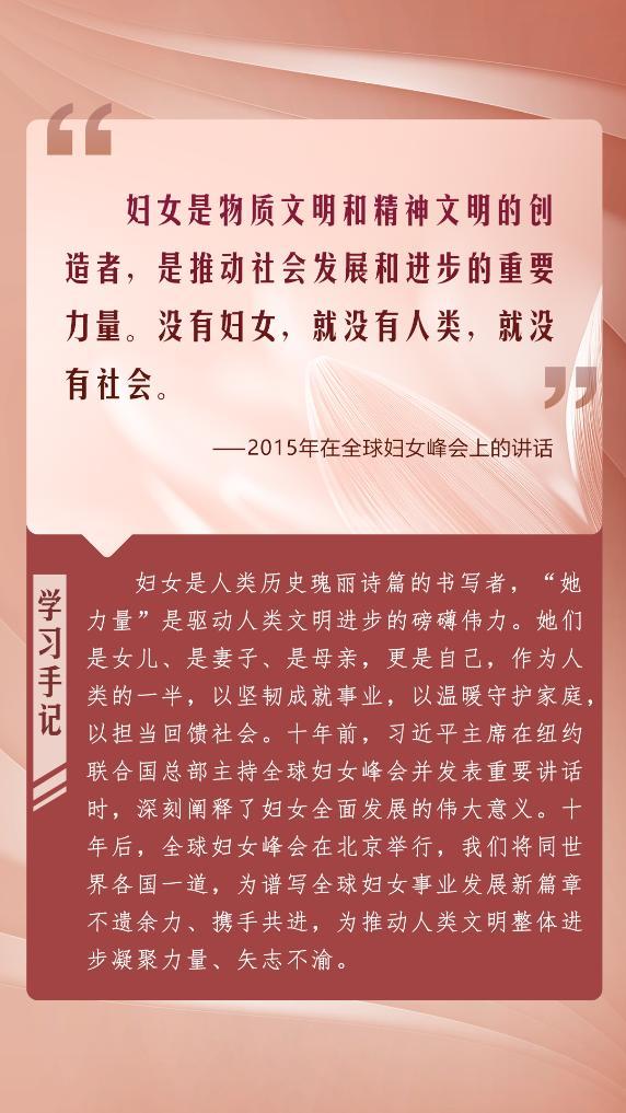 在全球婦女峰會即將舉行之際,我們重溫習近平總書記的重要論述,共同展望婦女發(fā)展的美好未來,期待全球婦女事業(yè)發(fā)展譜寫新的絢爛篇章。