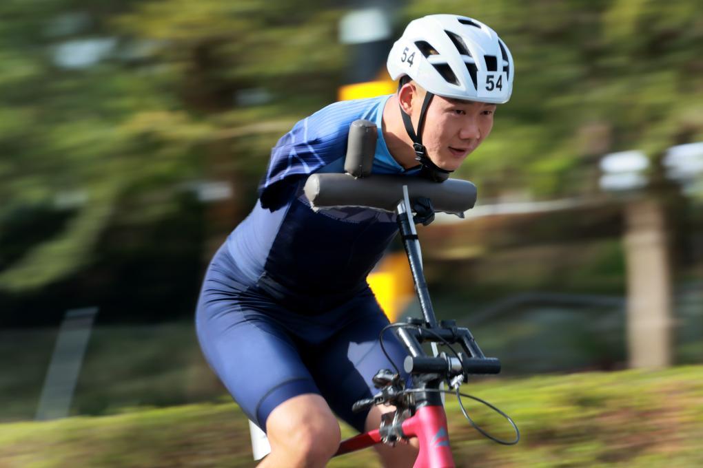 ↑11月27日,新疆隊選手鄧偉在男子PTS2級別自行車比賽中,最終他獲得該級別銅牌。新華社發(fā)(劉春林?jǐn)z)