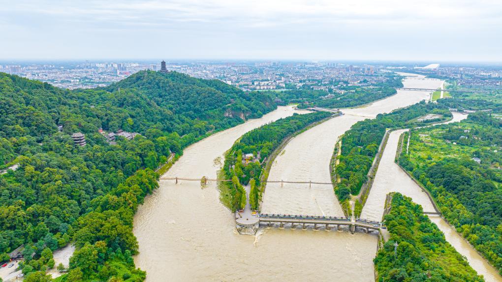 2025年7月拍攝的都江堰水利工程(無(wú)人機(jī)照片)。新華社發(fā)(何勃 攝)
