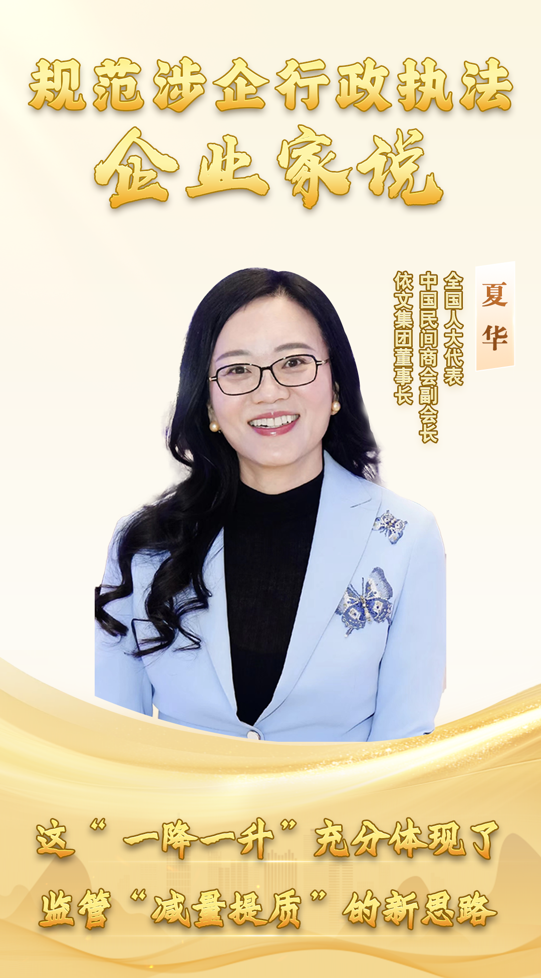 大家好!我是依文集團董事長夏華。規(guī)范涉企行政執(zhí)法專項行動開展以來,我深切地感受到帶來的積極變化,不僅從我們自己的企業(yè),還從這半年多來,我陪同全國工商聯(lián)走訪調(diào)研了許多不同類型的企業(yè),一個最深的感受是:企業(yè)的獲得感增強了,評價也非常高。大家普遍認為,這是優(yōu)化營商環(huán)境實實在在的“關(guān)鍵一招”。最有力的證明是數(shù)據(jù):全國行政檢查數(shù)量同比下降了30%以上,而問題的發(fā)現(xiàn)率卻提升了16個百分點。這“一降一升”,充分體現(xiàn)了監(jiān)管“減量提質(zhì)”的新思路。對于此,我也有很深刻的體會。
