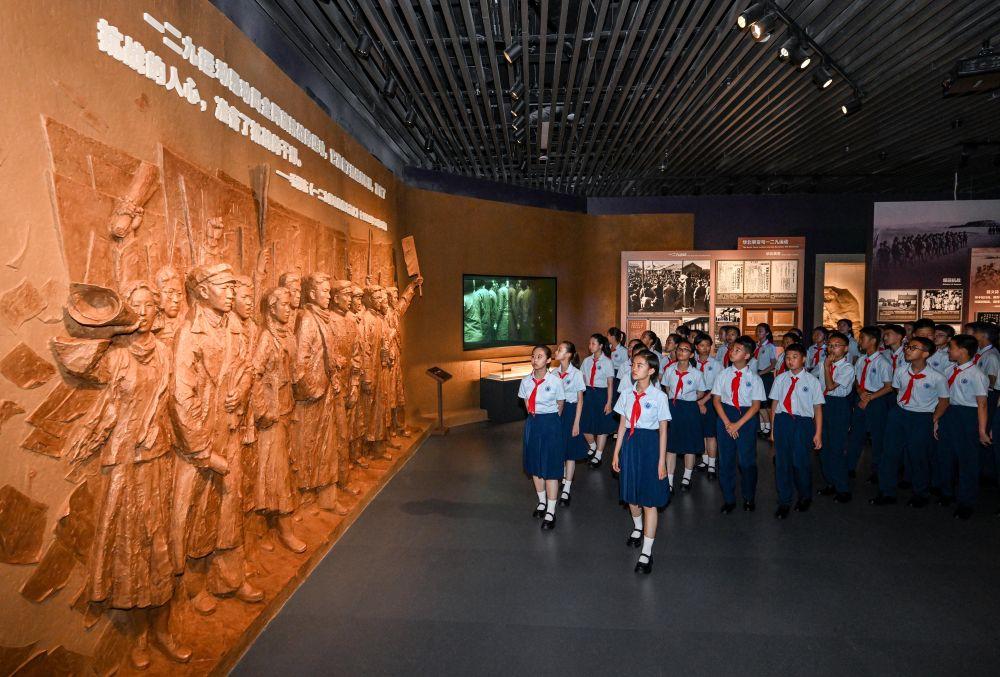 2025年7月7日,在北京中國人民抗日戰(zhàn)爭紀念館,北京市第十二中學的少先隊員參觀紀念全民族抗戰(zhàn)爆發(fā)88周年儀式暨《為了民族解放與世界和平》主題展覽。