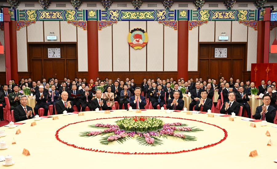 12月31日,全國政協(xié)在北京舉行新年茶話會(huì)。黨和國家領(lǐng)導(dǎo)人習(xí)近平、李強(qiáng)、趙樂際、王滬寧、蔡奇、丁薛祥、李希、韓正出席茶話會(huì)并觀看演出。