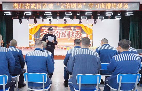 圖為湖北省武昌監(jiān)獄教育改造科副科長陶洋正在“文韻劇場”組織罪犯排練。