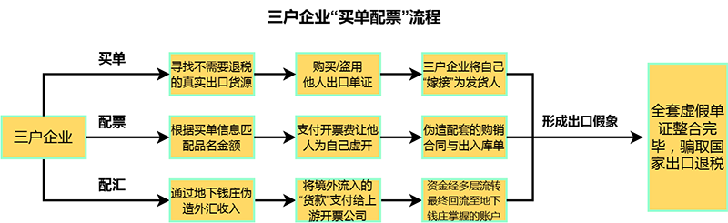 隨著調(diào)查深入,一個以楊榮棟為首的騙稅團伙架構(gòu)逐漸清晰。該團伙通過控制3戶企業(yè),有組織地實施購買出口數(shù)據(jù)、偽造單證、接受虛開、虛假結(jié)匯等一系列違法行為。經(jīng)專案組最終認(rèn)定,該團伙累計騙取出口退稅款2.01億元。