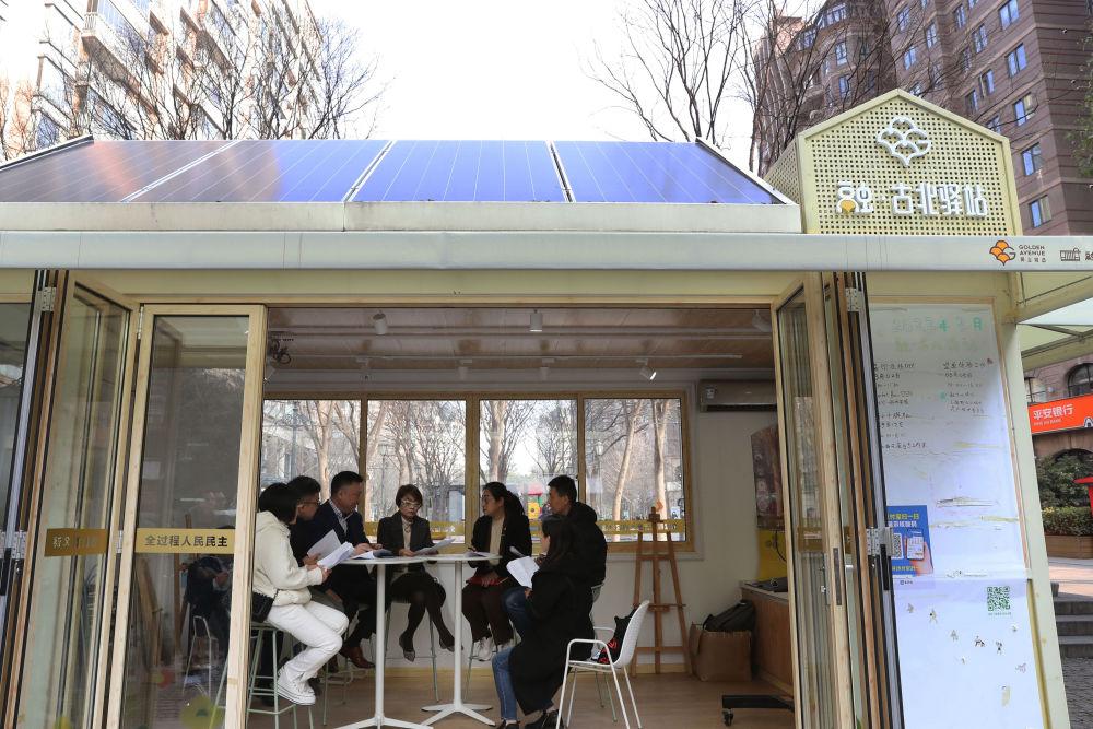 2023年2月17日,在上海虹橋街道“融·古北驛站”,人大代表向轄區(qū)內(nèi)的商戶(hù)宣傳普及新施行的《上海市住房租賃條例》。虹橋街道是全國(guó)人大常委會(huì)法工委2015年在全國(guó)設(shè)立的首批四個(gè)基層立法聯(lián)系點(diǎn)之一。新華社記者 劉穎 攝