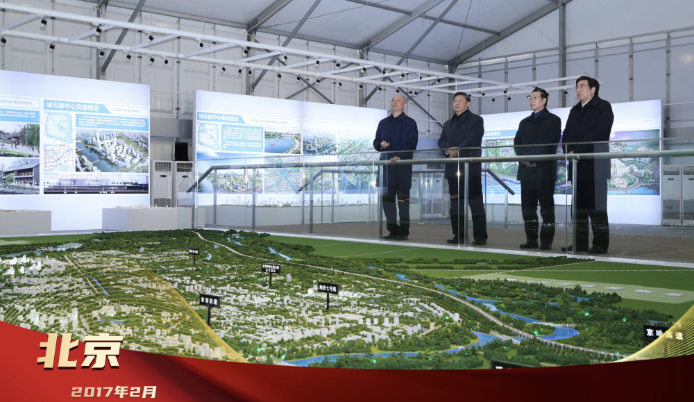 2017年2月24日,習近平總書記在北京城市副中心行政辦公區(qū)建設現(xiàn)場指揮部察看規(guī)劃沙盤,了解副中心建設理念、目標定位、文化保護等情況。創(chuàng)新為要、“瓣瓣同心”,總書記的戰(zhàn)略擘畫,引領京津冀協(xié)同發(fā)展走深走實。