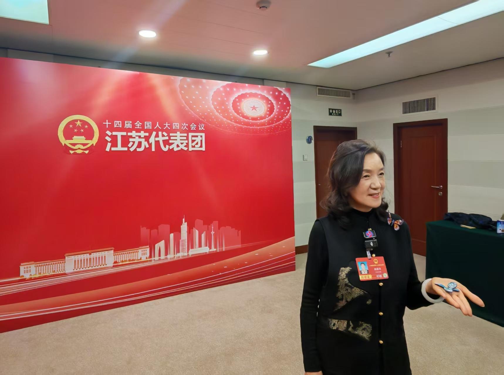 “這枚胸針,是法國設(shè)計(jì)師和我們團(tuán)隊(duì)共同創(chuàng)作,用蘇繡、珠寶和現(xiàn)代工藝設(shè)計(jì)而成。”3月7日晚,在全國兩會江蘇代表團(tuán)駐地,全國人大代表,蘇州高新區(qū)鎮(zhèn)湖刺繡研究所藝術(shù)總監(jiān)姚建萍向《法治日報》全媒體記者展示了一枚精美的蝴蝶胸針。這只蝴蝶,正是她推動非遺“年輕化、時尚化、國際化”的縮影。