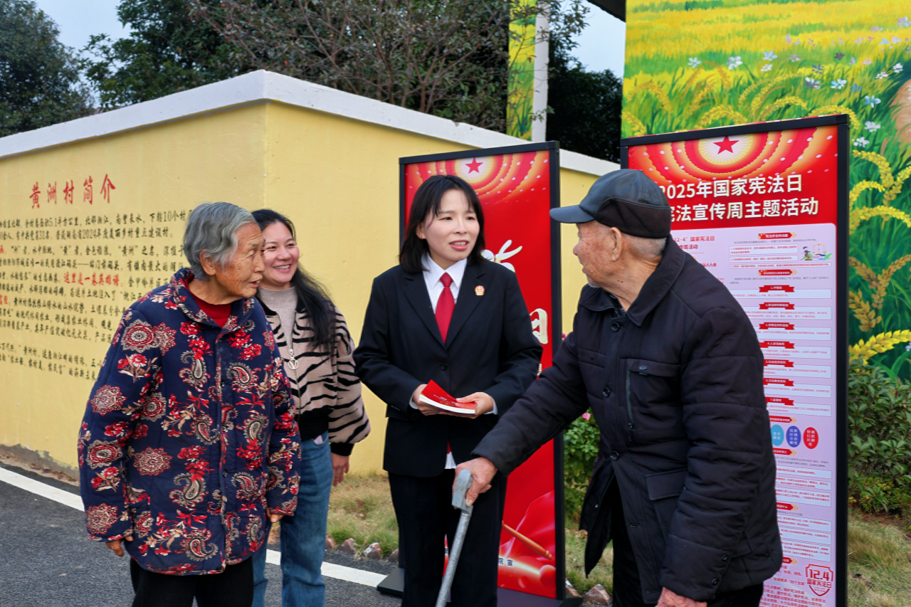 衡陽(yáng)珠暉法院干警走進(jìn)茶山坳鎮(zhèn)黃洲村開(kāi)展憲法宣傳活動(dòng)。陳雪瑤、劉郁欣 攝