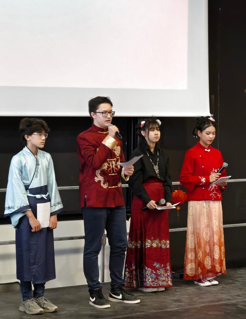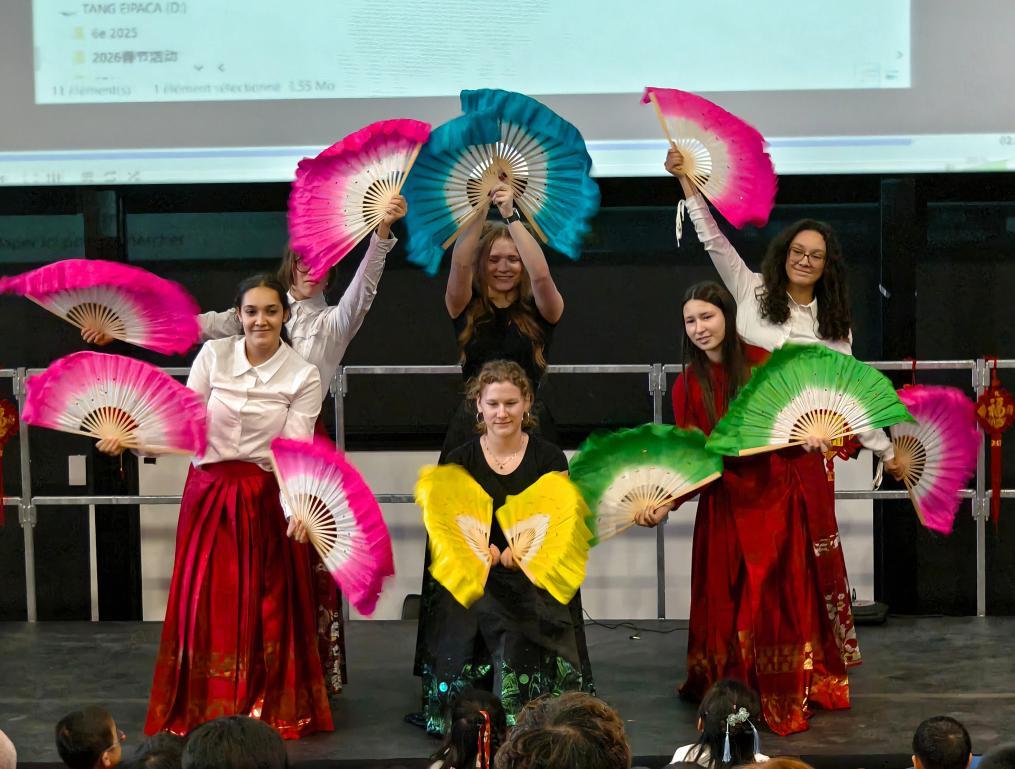 2月5日,在法國馬諾斯克,普羅旺斯-阿爾卑斯-藍色海岸大區(qū)國際學校學生在春節(jié)活動上表演。新華社發(fā)(普羅旺斯-阿爾卑斯-藍色海岸大區(qū)國際學校供圖)