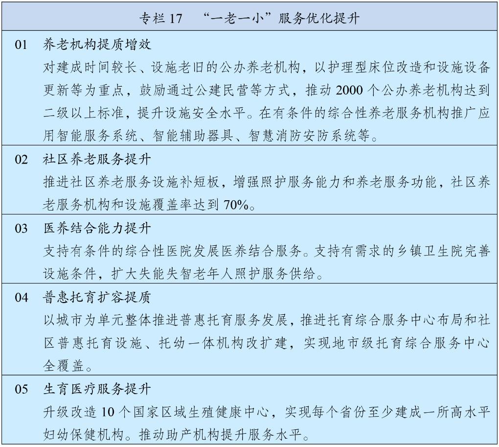 堅(jiān)持兒童優(yōu)先發(fā)展,切實(shí)保障兒童生存權(quán)、發(fā)展權(quán)、受保護(hù)權(quán)和參與權(quán)。推進(jìn)兒童近視、超重肥胖和孤獨(dú)癥等早篩查早干預(yù)。提高兒童醫(yī)療保健服務(wù)水平,豐富兒童用藥品種。加強(qiáng)困境兒童關(guān)愛服務(wù),推進(jìn)流動(dòng)兒童、留守兒童分類幫扶,有效提升福利保障水平。完善兒童早期發(fā)展服務(wù)。制定實(shí)施兒童傷害防控行動(dòng)計(jì)劃,強(qiáng)化未成年人違法犯罪預(yù)防和治理,有效防治學(xué)生欺凌。加強(qiáng)未成年人網(wǎng)絡(luò)保護(hù),拓展網(wǎng)絡(luò)育人空間和陣地。推進(jìn)兒童友好建設(shè),營造關(guān)心關(guān)愛下一代的社會(huì)環(huán)境。