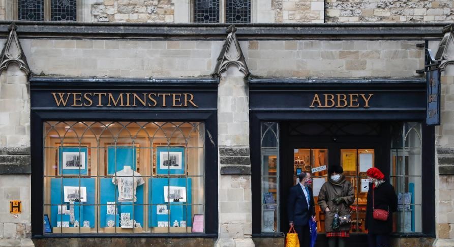 12月13日,戴著口罩的人們在英國倫敦的威斯敏斯特橋上行走。