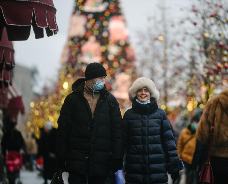 12月16日,在俄羅斯首都莫斯科,人們戴口罩出行。新華社發(fā)(葉甫蓋尼·西尼岑攝)
