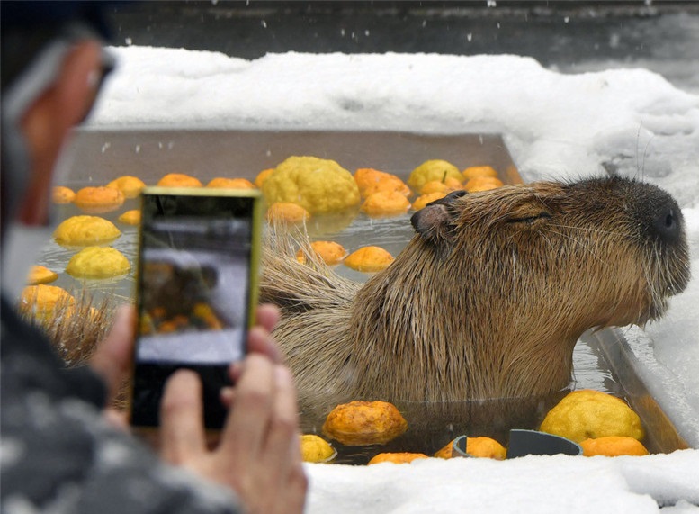 溫暖過冬至!日本水豚泡柚子浴表情享受--國際--人民網(wǎng)