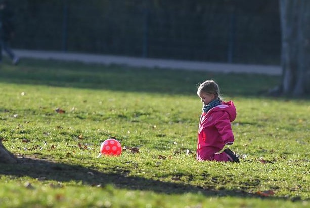 1月10日,在德國法蘭克福,一名孩子在戶外玩耍。