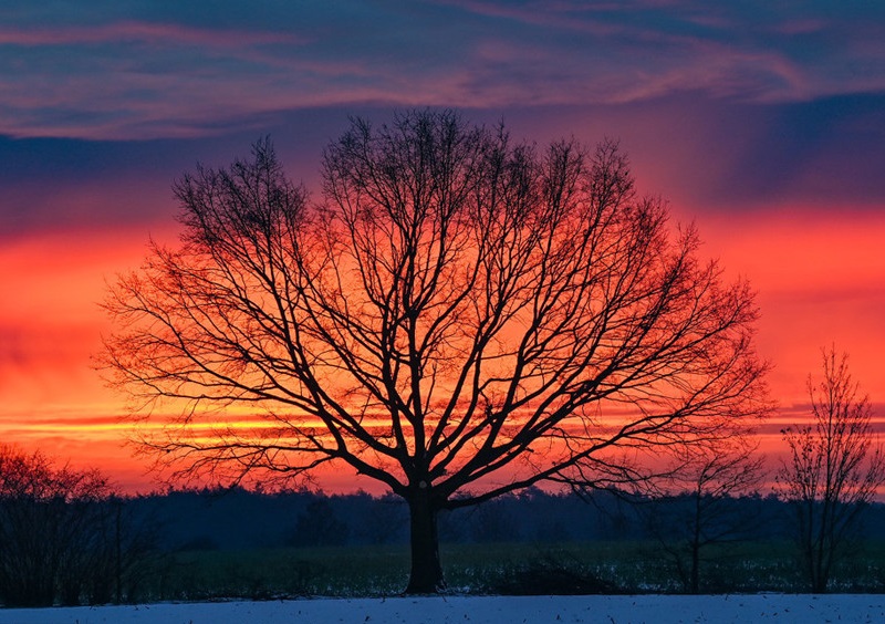 德國(guó)勃蘭登堡小鎮(zhèn)日出時(shí)分朝霞似火