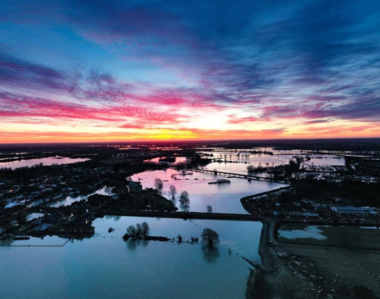 英國劍橋天空現(xiàn)火紅晚霞
