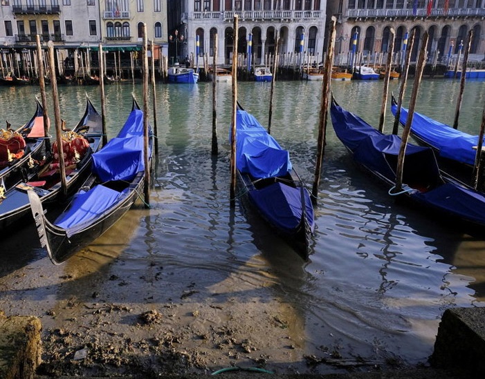 人民網(wǎng)訊 當(dāng)?shù)貢r間2月26日,意大利威尼斯,由于罕見“低潮”,“水城”威尼斯運(yùn)河水位下降,使得不少河道河床暴露,影響威尼斯交通和航運(yùn),導(dǎo)致當(dāng)?shù)刂饕煌üぞ哓暥嗬瑪R淺在淤泥中。