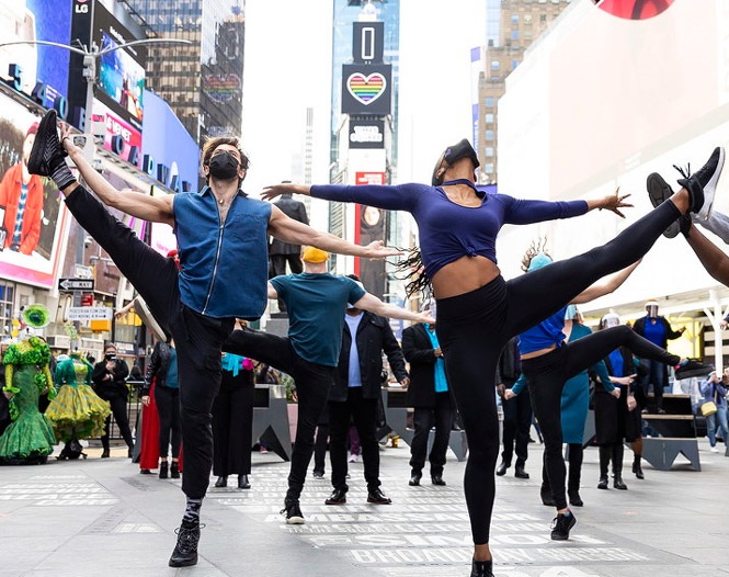 人民網(wǎng)訊 當(dāng)?shù)貢r(shí)間2021年3月12日,美國紐約,百老匯劇院關(guān)閉一周年,美國戲劇界在時(shí)代廣場組織了一場名為“我們會(huì)回來的”的快閃演出。