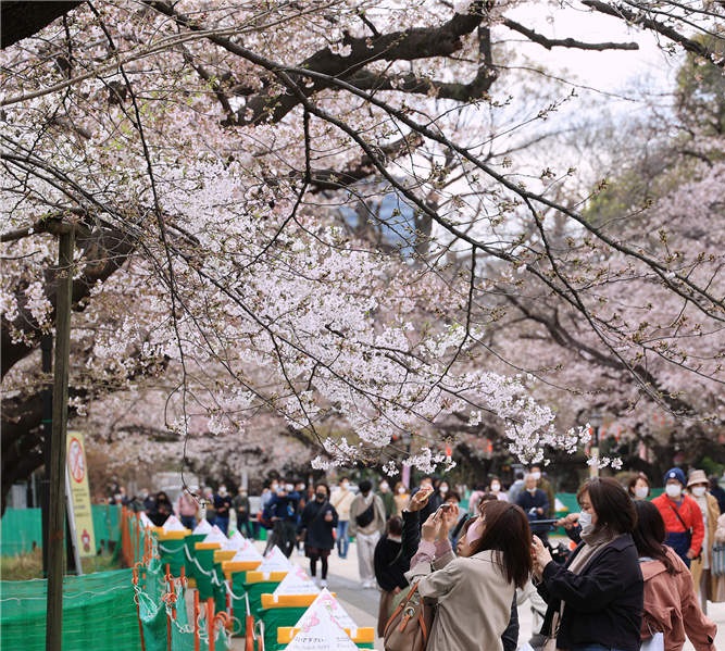 當?shù)貢r間3月22日,日本東京,當?shù)貦鸦ㄊ㈤_,吸引不少民眾前來賞櫻。