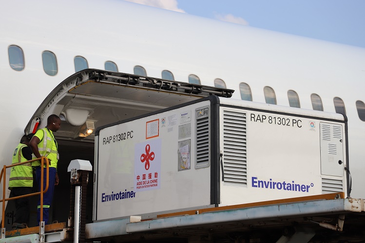 中國(guó)政府援助中非共和國(guó)的一批新冠疫苗6日運(yùn)抵中非首都班吉。