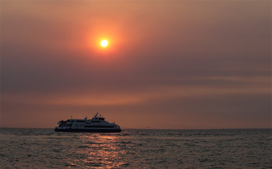 人民網(wǎng)訊 當?shù)貢r間8月6日,土耳其日落橙光滿天,海上風景美如畫。
