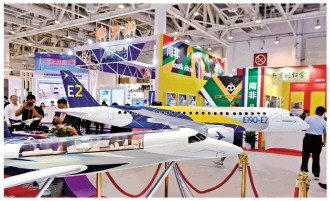9月8日,2021金磚國(guó)家新工業(yè)革命展在廈門開幕。圖為在展覽上拍攝的參展飛機(jī)模型。 新華社發(fā)