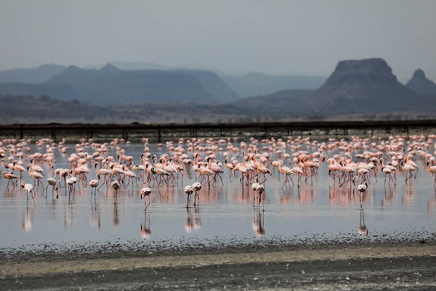 人民網(wǎng)訊 當(dāng)?shù)貢r(shí)間3月25日,肯尼亞卡賈多,火烈鳥(niǎo)群聚在東非大裂谷的馬加迪湖中悠閑涉水。