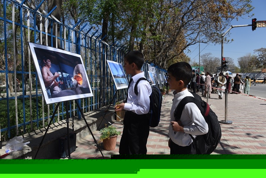 3月31日,阿富汗民眾在首都喀布爾街頭觀看名為“貧困與希望”的攝影展。