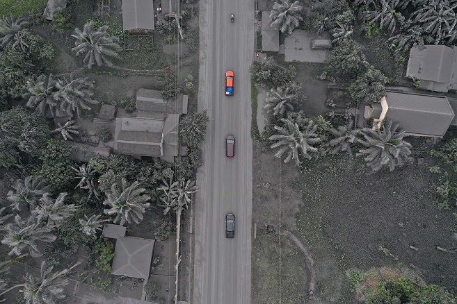 6月5日,菲律賓索索貢省的一個(gè)城鎮(zhèn)被布盧桑火山噴發(fā)的火山灰覆蓋(無(wú)人機(jī)照片)。