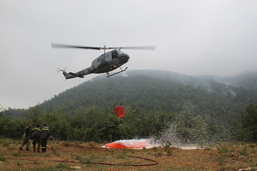 6月8日,一架軍用直升機(jī)在黎巴嫩北部的丹尼耶地區(qū)進(jìn)行滅火作業(yè)。