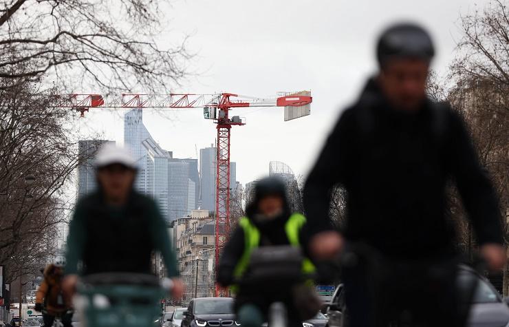 這是2月1日在法國(guó)巴黎拍攝的拉德芳斯商務(wù)區(qū)及塔吊。新華社記者 高靜 攝