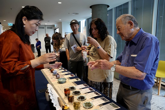 5月21日,人們在以色列特拉維夫中國文化中心“茶和天下·雅集——美在鄭州”推廣活動上品茶。新華社發(fā)(吉爾·科恩·馬根 攝)