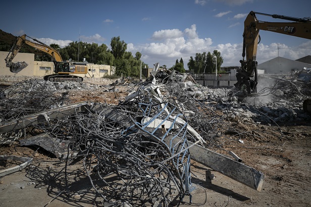 10月15日,工作人員清理沖突中被毀的斯代羅特警察局。新華社記者 陳君清 攝
