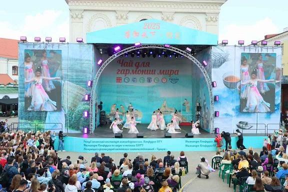 “茶和天下?雅集”活動(dòng)5月31日在白俄羅斯首都明斯克市中心的自由廣場(chǎng)舉行。中國(guó)駐白俄羅斯大使張汶川、明斯克市執(zhí)委會(huì)第一副主席拉扎列維奇、天津文化藝術(shù)代表團(tuán)團(tuán)長(zhǎng)周建軍、白文化部長(zhǎng)切爾涅茨基、經(jīng)濟(jì)部副部長(zhǎng)阿布拉緬科,以及白政府、議會(huì)、政黨、智庫(kù)、各國(guó)駐白使節(jié)等各界人士近3萬(wàn)人出席活動(dòng)。