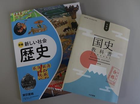 東京書籍出版的《新編 新社會(huì) 歷史》和令和書籍出版的《國(guó)史教科書(第7版)》(新華社記者陳澤安 攝)