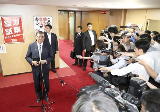 圖為當(dāng)?shù)貢r(shí)間7月23日,日本東京,日本首相石破茂在自民黨總部與三位前首相會(huì)晤后回答記者提問。 CFP供圖