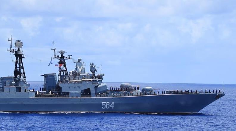 中俄“海上聯(lián)合-2025”聯(lián)合演習當地時間1日至5日在俄羅斯符拉迪沃斯托克附近??沼蚺e行。演習結束后,參與演習的中國海軍導彈驅逐艦紹興艦、綜合補給艦千島湖艦與俄羅斯海軍“特里布茨海軍上將”號大型反潛艦等3艘水面艦艇及2架艦載直升機組成聯(lián)合編隊,位西太平洋某海域組織海上聯(lián)合巡航。