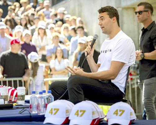 圖為9月10日,查理·柯克在美國猶他州奧勒姆市的猶他山谷大學遭槍擊前發(fā)表演講。 新華社發(fā)