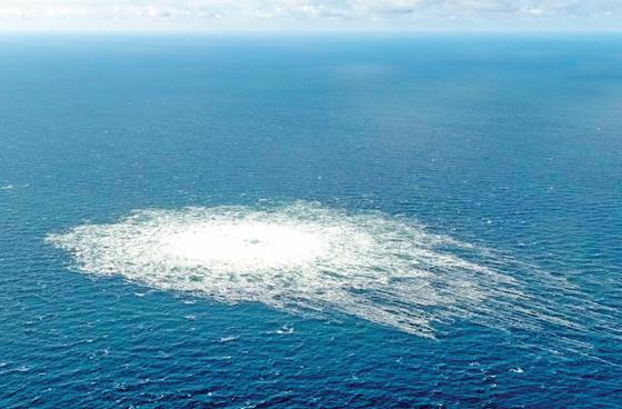 圖為丹麥國防部2022年9月27日發(fā)布的航拍照片顯示的是一處“北溪”天然氣管道泄漏點。 新華社發(fā)