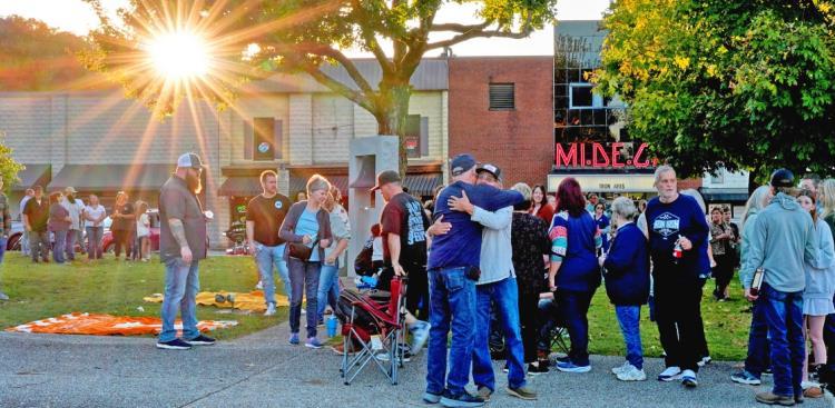 圖為當(dāng)?shù)貢r間10月12日,美國田納西州韋弗利,民眾聚集在漢弗萊斯縣法院,為炸藥廠爆炸事件的遇難者舉行燭光守夜活動。 CFP供圖