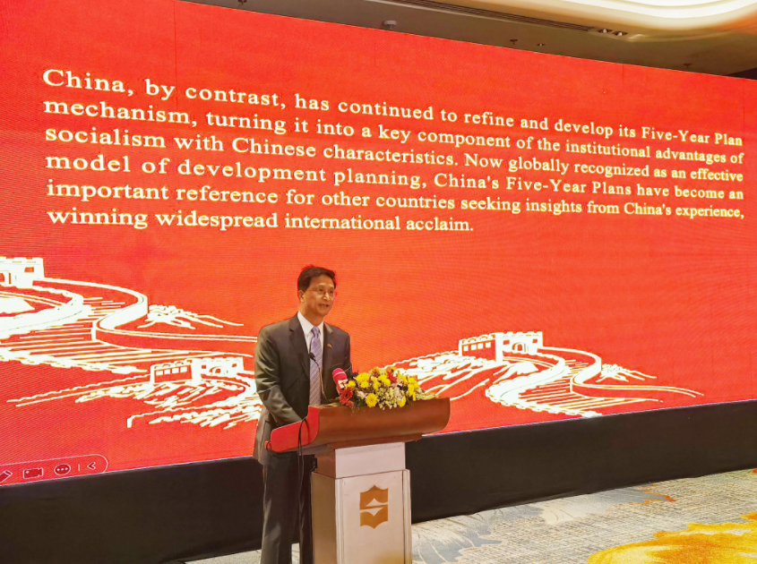 戚振宏表示,中國(guó)共產(chǎn)黨二十屆四中全會(huì)審議通過(guò)的“十五五”規(guī)劃建議,是中國(guó)今后五年經(jīng)濟(jì)社會(huì)發(fā)展的宏偉藍(lán)圖,也展示了中國(guó)與世界合作共贏的美好愿景。科學(xué)制定和接續(xù)實(shí)施五年規(guī)劃,是中國(guó)共產(chǎn)黨治國(guó)理政一條重要經(jīng)驗(yàn),也是中國(guó)特色社會(huì)主義一個(gè)重要政治優(yōu)勢(shì)。中國(guó)五年規(guī)劃是被實(shí)踐證明了的成功發(fā)展規(guī)劃,成為世界各國(guó)借鑒中國(guó)經(jīng)驗(yàn)的重要方面,贏得廣泛國(guó)際贊譽(yù)。戚振宏介紹了中國(guó)“十四五”時(shí)期取得的重大成就及“十五五”規(guī)劃提出的未來(lái)五年中國(guó)經(jīng)濟(jì)社會(huì)發(fā)展七個(gè)主要目標(biāo),強(qiáng)調(diào)中國(guó)將以新發(fā)展為世界各國(guó)提供新機(jī)遇。戚振宏指出,與中國(guó)同行就是與機(jī)遇同行,相信中國(guó)就是相信明天,投資中國(guó)就是投資未來(lái)。中斯傳統(tǒng)友誼源遠(yuǎn)流長(zhǎng),兩國(guó)是發(fā)展振興的同路人、合作共贏的好伙伴。斯里蘭卡“繁榮國(guó)家、幸福生活”美好愿景以及“清潔蘭卡”“數(shù)字轉(zhuǎn)型”和“鄉(xiāng)村發(fā)展”三大規(guī)劃與中國(guó)“十五五”規(guī)劃中有關(guān)內(nèi)容高度契合,中方愿同斯方加強(qiáng)發(fā)展戰(zhàn)略對(duì)接,在高質(zhì)量共建“一帶一路”框架下,共同拓展港口經(jīng)濟(jì)、現(xiàn)代農(nóng)業(yè)、數(shù)字經(jīng)濟(jì)、綠色經(jīng)濟(jì)、旅游等合作,助力斯里蘭卡經(jīng)濟(jì)社會(huì)發(fā)展,為兩國(guó)人民創(chuàng)造更多福祉,攜手打造中斯命運(yùn)共同體。